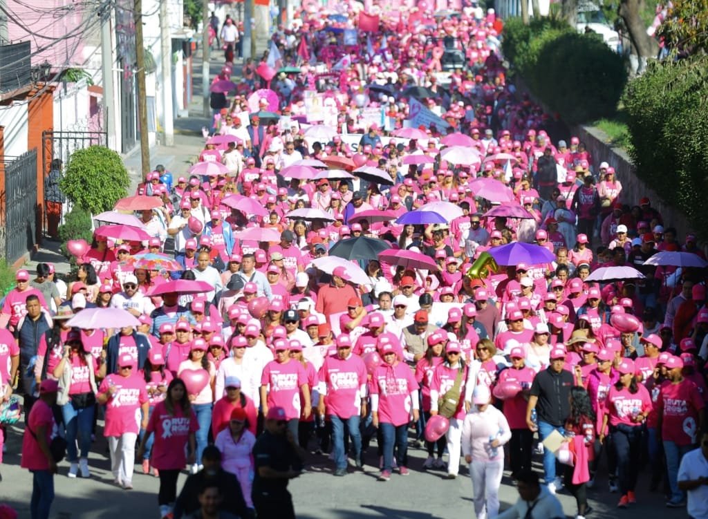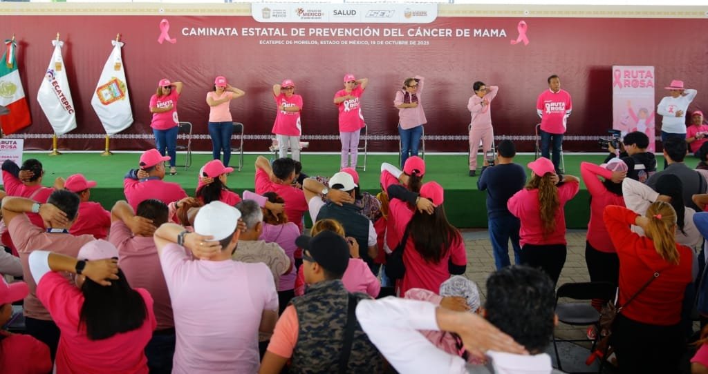 Con playeras y gorras color rosa, más de 3 mil mujeres y hombres participaron en la Caminata Estatal de Prevención del Cáncer de Mama en Ecatepec, evento que fue presidido por la alcaldesa Azucena Cisneros Coss, quien estuvo acompañada por la secretaria de Salud, Macarena Montoya Olvera, a fin de visibilizar y concientizar a la población sobre este mal, principal causa de muerte entre los tumores malignos.