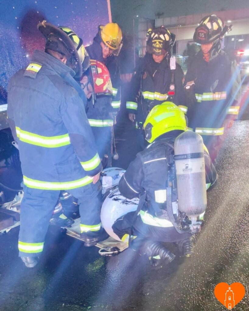 Cinco Bomberos de Tepotzotlán pusieron en riesgo su vida mientras controlaban la fuga de gas del tanque de una camioneta marca Ford de 3 1/2 toneladas, que transportaba tarimas.