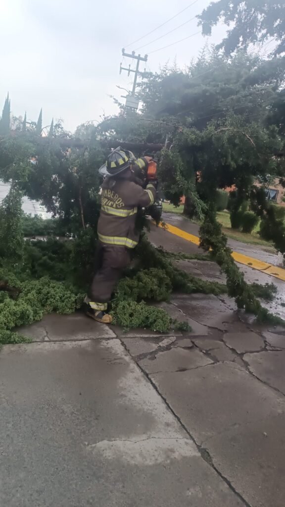 De igual forma, se realizan trabajos de retiro de un desgajamiento en Paseo Matlatzincas, aunado al levantamiento de un árbol caído en San Mateo Otzacatipan, sin que se registraran mayores daños.
