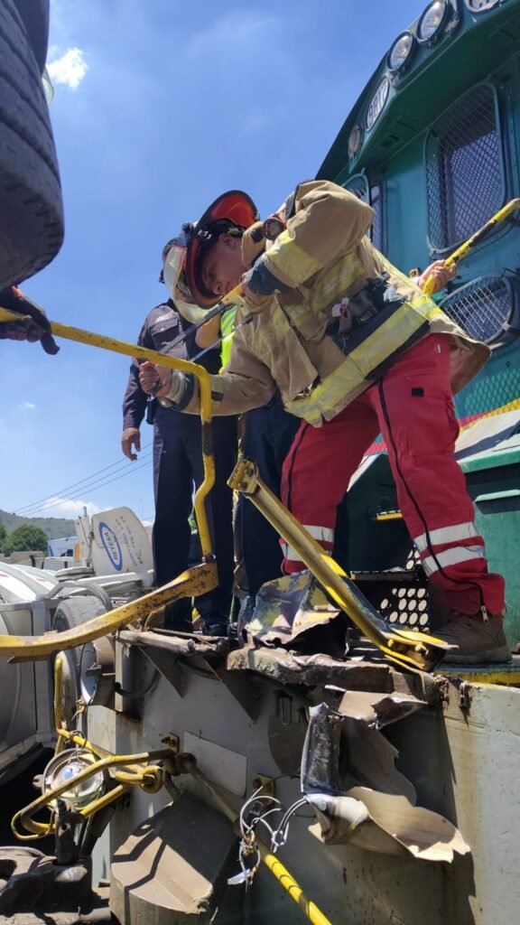 Personal de Atención Prehospitalaria atendió al conductor del tren de 57 años, quien resultó con golpes leves y al operador de la pipa quien presentaba igual golpes leves y será puesto a disposición de las autoridades para deslindar responsabilidades.