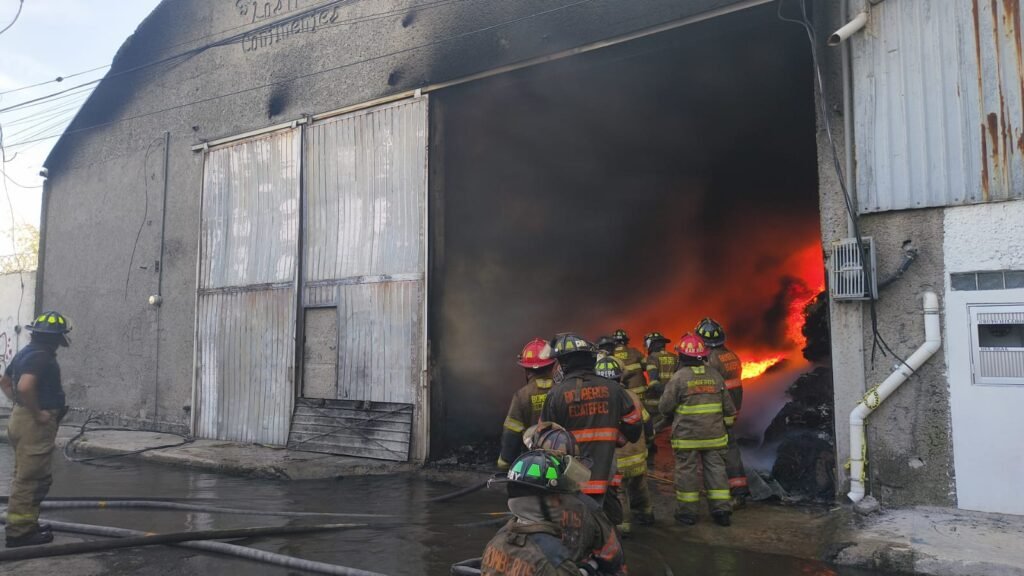 BOMBEROS DE ECATEPEC CONTROLAN INCENDIO EN BODEGA DE CARTÓN Y BORRAN RIESGOS PARA LA POBLACIÓN
