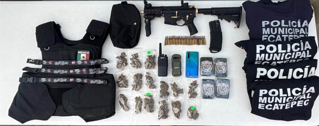 Como resultado de la cooperación e intercambio de información interinstitucional entre la policía municipal, personal de Fuerza de Tarea Marina y la Fiscalía General de Justicia del Estado de México fue detenido en posesión de armas, equipo táctico y drogas, Juan Manuel “N”, de 37 años, líder del grupo criminal “Los Mayas y brazo armado de la organización USON.