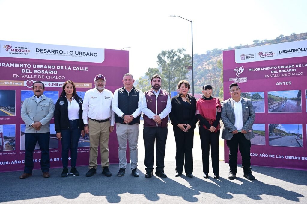 La Gobernadora Delfina Gómez Álvarez entregó el mejoramiento urbano integral de la calle Del Rosario, como parte de la estrategia Caminemos Seguras EdoMéx, mediante la cual se recuperan espacios públicos y se benefició a más de 2 mil mujeres. La obra es resultado del trabajo interinstitucional orientado a atender rezagos históricos y mejorar la calidad de vida de la población.