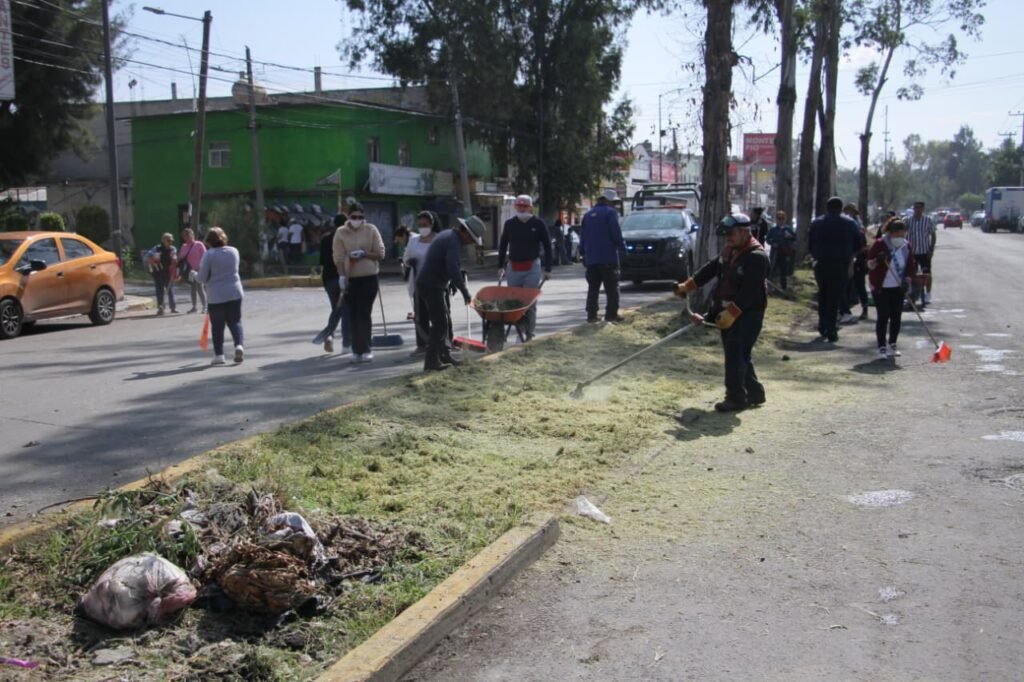 Ecatepec se embellece con el “Programa Limpieza y Rehabilitación de Camellones”, impulsado por la alcaldesa Azucena Cisneros Coss y donde participan trabajadores del Ayuntamiento y vecinos.