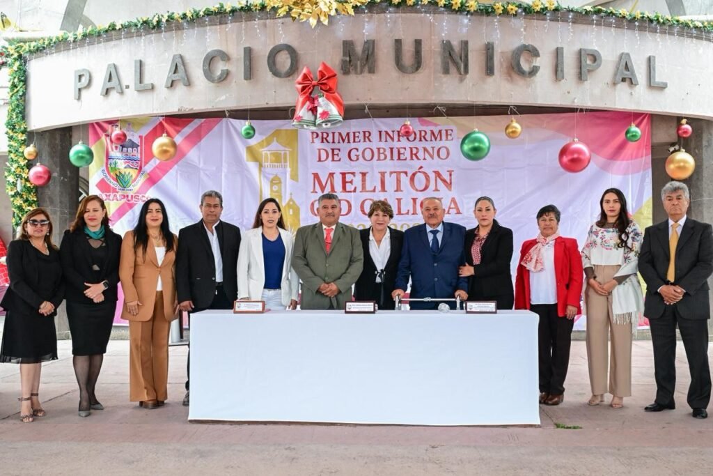 La Gobernadora Delfina Gómez asistió al Primer Informe de Gobierno de Melitón Cid Galicia, Presidente Municipal de Axapusco, donde refrendó su compromiso con las mujeres mexiquenses, la educación y el fortalecimiento de los gobiernos locales.
