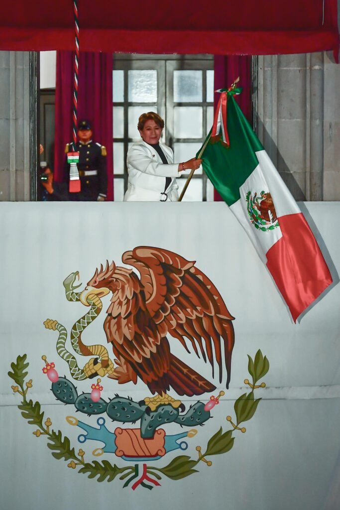 La Mandataria estatal recibió de manos del Presidente Municipal de Toluca, Ricardo Moreno Bastida, la bandera de México, para después salir al balcón central de Palacio de Gobierno, ondear el lábaro patrio y emitir arengas que incluyeron ¡Vivas! a heroínas y héroes de la Independencia, a la libertad, la igualdad, la justicia, la democracia, la soberanía, los pueblos indígenas y a las mujeres anónimas que forjaron esta lucha.