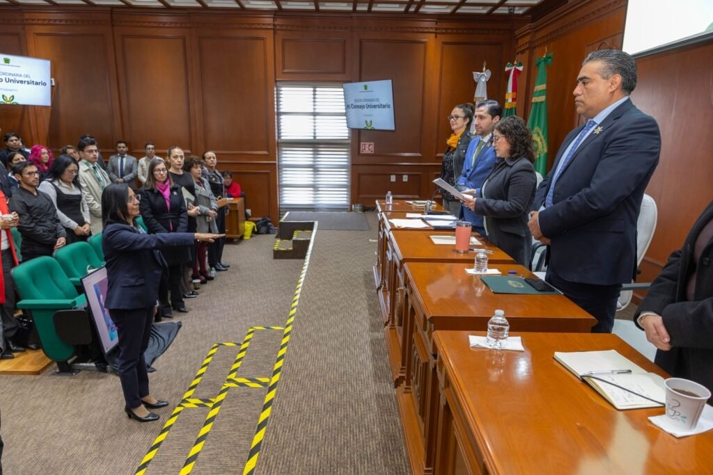 Durante la sesión, el pleno también tomó protesta a los nuevos consejeros representantes del personal académico de las facultades de Ingeniería y de Medicina Veterinaria y Zootecnia, así como de la comunidad estudiantil del Plantel “Cuauhtémoc” de la Escuela Preparatoria.