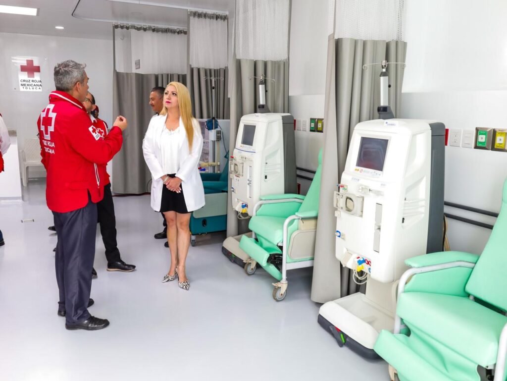 En una visita de trabajo a la sede de la Cruz Roja Toluca, Macarena Montoya Olvera, Secretaria de Salud estatal, recorrió las instalaciones donde se realizan obras de construcción, ampliación y modernización. Durante su visita, conoció la nueva unidad de hemodiálisis que opera las 24 horas del día, el laboratorio de análisis clínicos que procesa más de 700 pruebas, así como la unidad dental y otras áreas de este importante centro de atención.