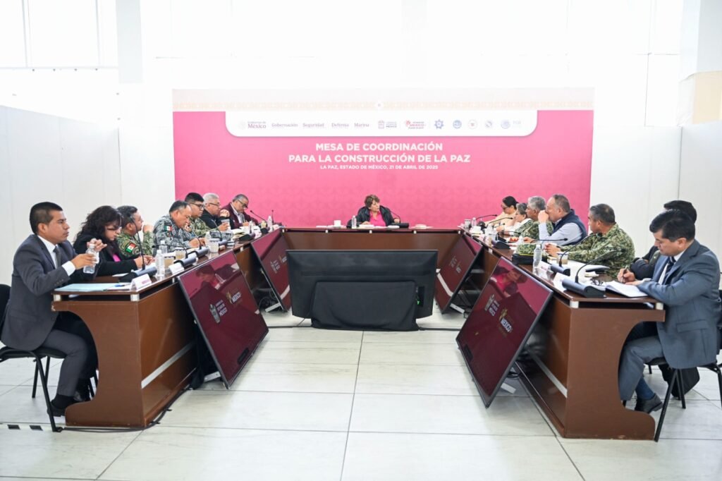 LA PAZ, Estado de México. – La Gobernadora delfina Gómez Álvarez encabezó la Mesa de Coordinación para la Construcción de la Paz, en el municipio de La Paz, donde se dio a conocer una disminución del 26 por ciento durante los primeros meses del año, como resultado del trabajo conjunto entre las autoridades federales, estatales y municipales.