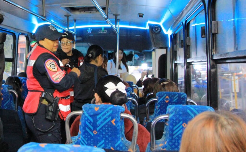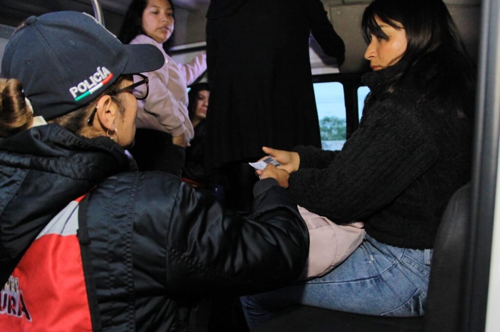 Al abordar una camioneta del transporte público, la presidenta municipal informó a las pasajeras que estos operativos buscan que lleguen tranquilas a sus destinos y evitar que puedan sufrir algún tipo de robo o agresión. “Sé lo que se siente ir en la combi y tener que guardar las cosas cuando se sube alguien que creemos nos pueda asaltar, o cuando sube el que vende dulces en el camión, por eso estamos en varios puntos con operativos”, refirió.