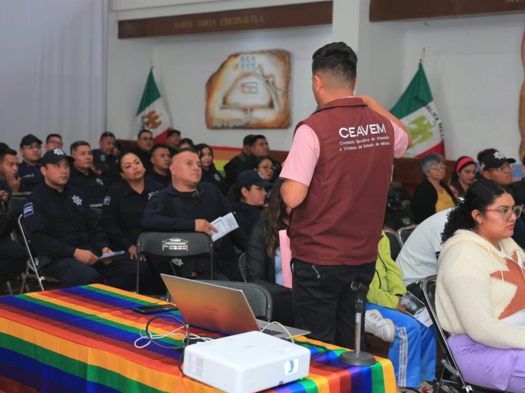 Yuritzi López Alvarado, directora de Diversidad Sexual de Ecatepec, dijo que servidores públicos municipales fueron capacitados por la CEAVEM sobre el protocolo de atención a las personas víctimas de violencia de la comunidad LGBTTTQI+, dirigido principalmente a policías y personas que están en atención directa a la población.