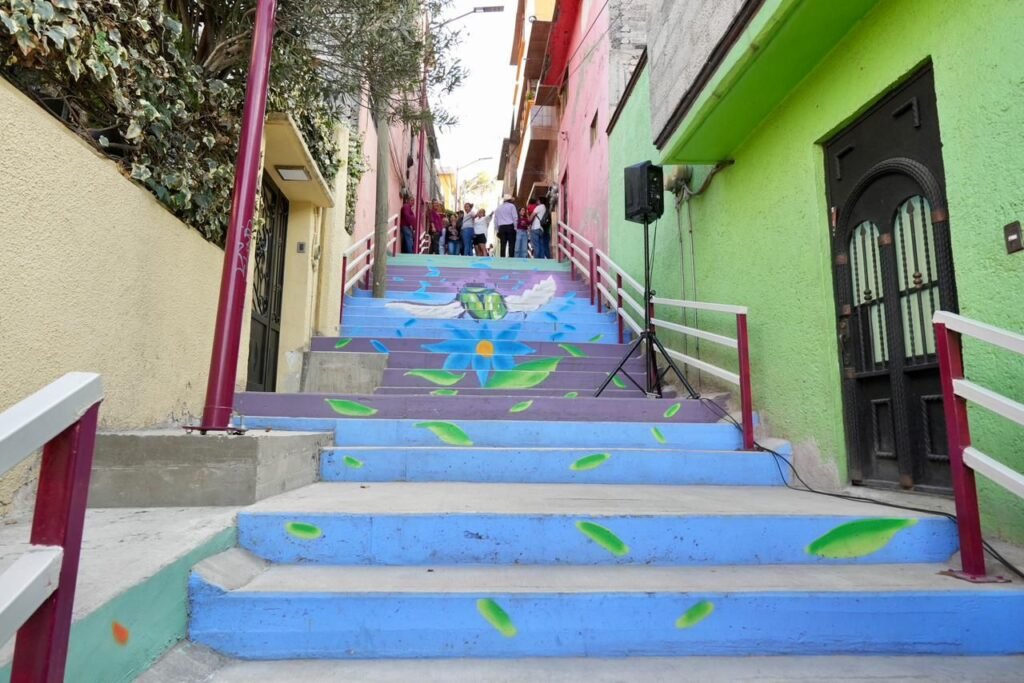 La transformación en esta misma colonia continuó con la modernización de los andadores Callejón Avalancha, Club Alpino Carpio y Coyotes, proyectos que sumaron una inversión de 8.2 millones de pesos para intervenir más de mil 200 metros cuadrados.