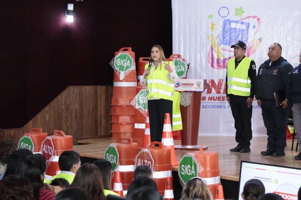 Ahí mismo, la presidenta municipal Ana Muñiz ratificó su compromiso con el mejoramiento de la infraestructura escolar y con la seguridad vial entorno a las escuelas, por lo que entregó paquetes de chalecos reflejantes, conos, trafitambos y señalamientos a las mesas de padres de familia para cuidar la entrada y salida de las escuelas.