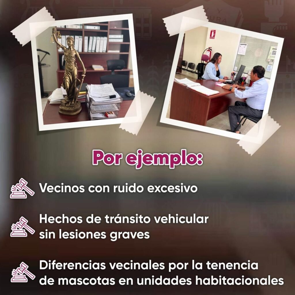 Si tienes problemas con ruido excesivo, diferencias por la tenencia de mascotas o incidentes de tránsito sin lesiones graves, puedes acudir al Juzgado Cívico más cercano para resolverlos de manera rápida y pacífica.