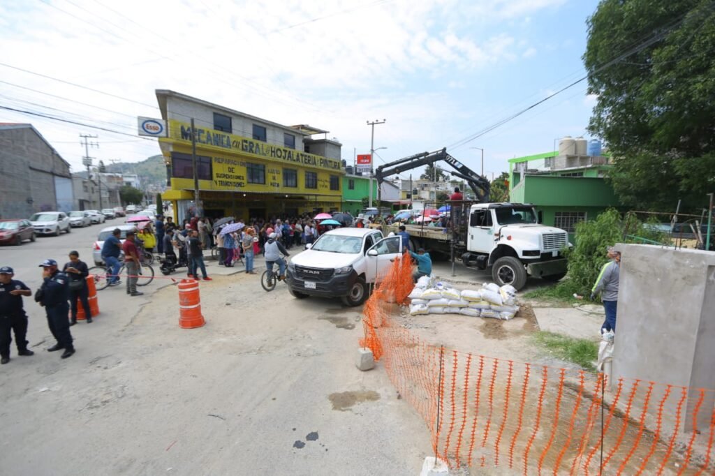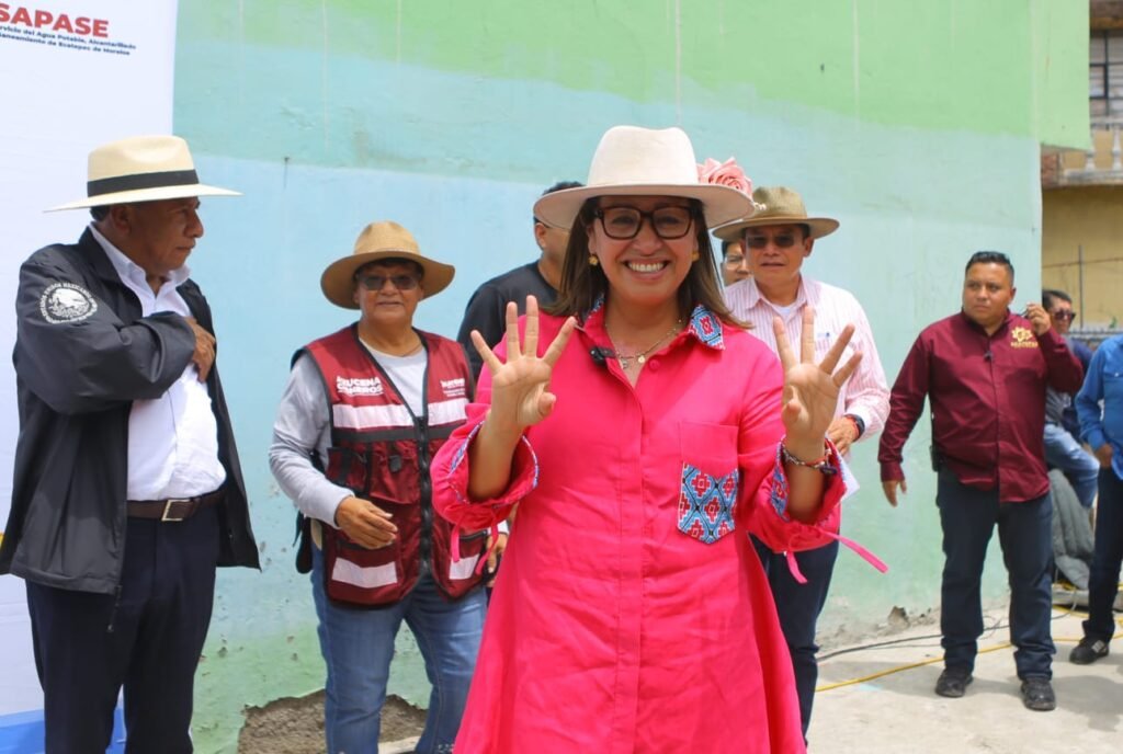 Más adelante, Azucena Cisneros se trasladó a la colonia Jardines de Santa Clara, donde personal de Sapase realizó la reparación de una fuga de agua en una tubería de 62 pulgadas y realiza una obra hidráulica que va a beneficiar a más de 22 mil habitantes de esta comunidad y de la colonia Héroes de la Independencia.