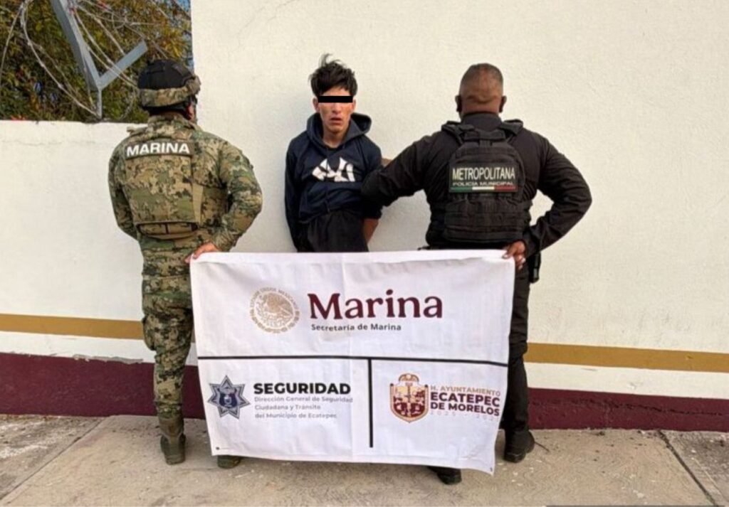Como resultado del trabajo coordinado de la policía municipal con la Marina para fortalecer la seguridad en el municipio, fue detenido Carlos Daniel “N”, alias “El Bunga”, vinculado a múltiples robos con violencia en Ecatepec y Tecámac.