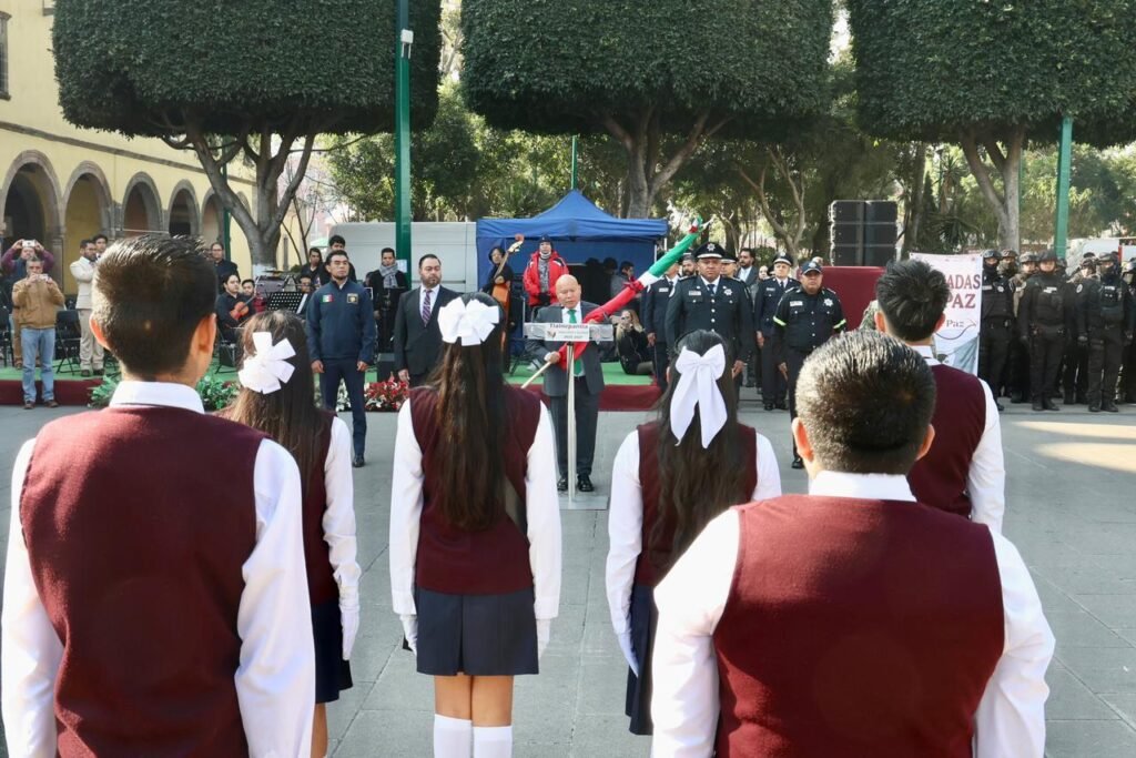 “Hoy 24 de febrero nos reunimos en esta plaza pública para honrar a uno de los más altos símbolos de nuestra identidad: la bandera de México. Nuestro lábaro patrio es la expresión viva de nuestra historia, de nuestras luchas y de la dignidad de un pueblo que ha sabido levantarse frente a la adversidad.
