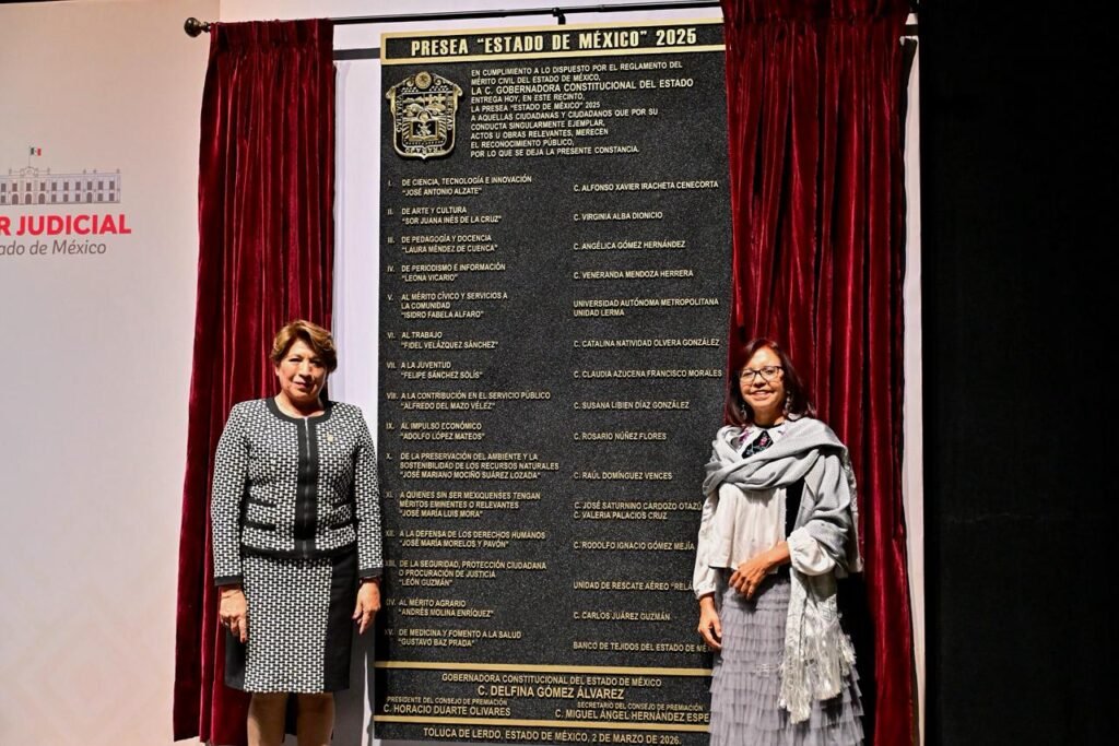 La Gobernadora Delfina Gómez Álvarez encabezó la ceremonia por el 202 Aniversario de la Fundación del Estado de México y la entrega de la Presea EdoMéx 2025, donde destacó que la transformación continúa este “2026, Año de las Obras”, enfocado en invertir de manera responsable y transparente para atender rezagos y deudas históricas en comunidades de los 125 municipios.