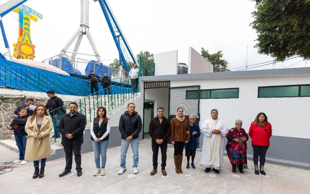 Posteriormente, el presidente municipal, acompañado por servidores públicos y el grupo de San Francisco de Asís, inauguró la remodelación de los baños públicos de la plaza. El padre Paulo Morales bendijo las instalaciones, agradeciendo el esfuerzo por mejorar los espacios comunitarios.