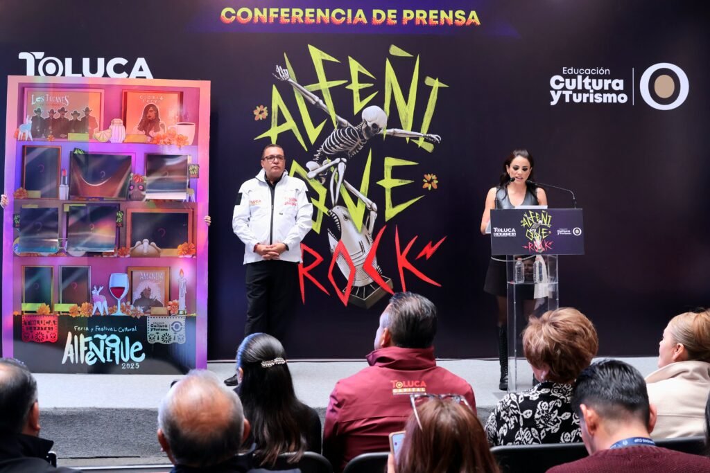 Por su parte, la titular de la Dirección General de Educación, Cultura y Turismo, Victoria Sánchez, dio a conocer que quienes vivan la tradición y la música en la Feria y Festival Cultural Alfeñique 2025 podrán también degustar dos cervezas que nacen en Toluca, elaboradas con la esencia de la tradición cervecera, llamadas Alfeñique y Ehécatl.