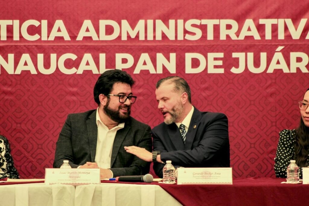 El Presidente Municipal, Isaac Montoya Márquez y el Magistrado Presidente del Tribunal de Justicia Administrativa del Estado de México, Gerardo Becker Ania, encabezaron la Firma de un Convenio de Colaboración entre este Tribunal y el Ayuntamiento de Naucalpan. A su vez, el alcalde destacó que esta participación representa mucho más que la unión entre instituciones: simboliza el encuentro entre el derecho y la justicia social, entre la norma y la vocación de servicio.