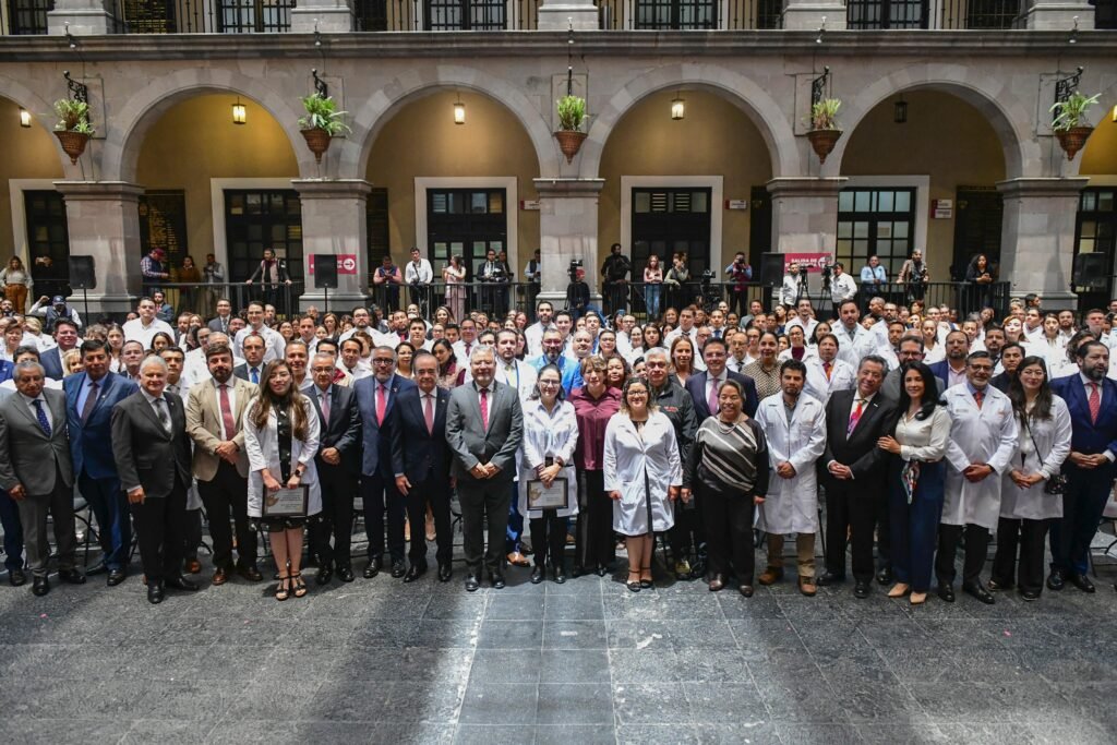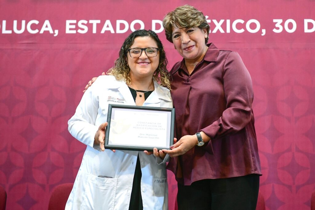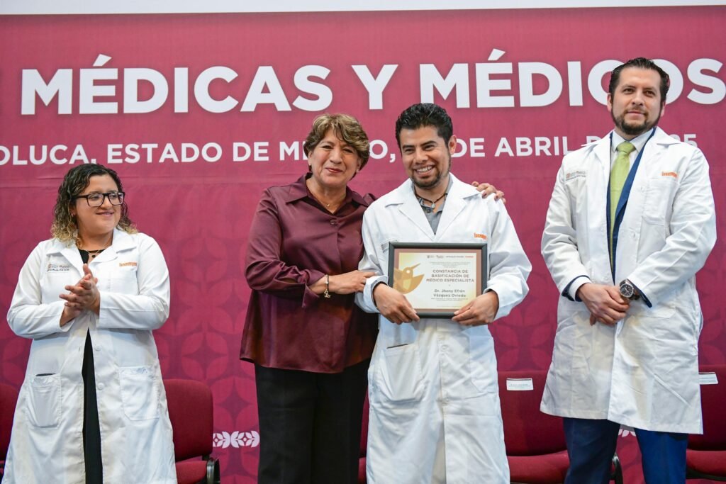 “Hoy pretendemos cumplir una deuda con ustedes, médicos y médicas especialistas, quienes efectivamente, con dedicación, con humanismo y con vocación de servicio atienden la salud de las personas servidoras públicas y de sus familias, es un acto de justicia y reconocimiento”, indicó la Gobernadora Delfina Gómez Álvarez.