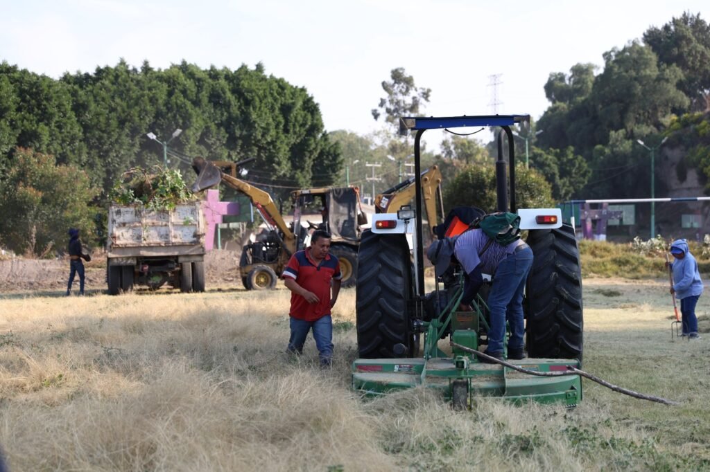 Trabajadores del gobierno de Ecatepec, junto con elementos de la policía municipal, Sedena y Guardia Nacional, participaron en la Jornada de Recuperación de Espacios en el deportivo Emiliano Zapata, como resultado de los acuerdos en la Mesa de Paz para intervenir entornos públicos y mejorar la seguridad.