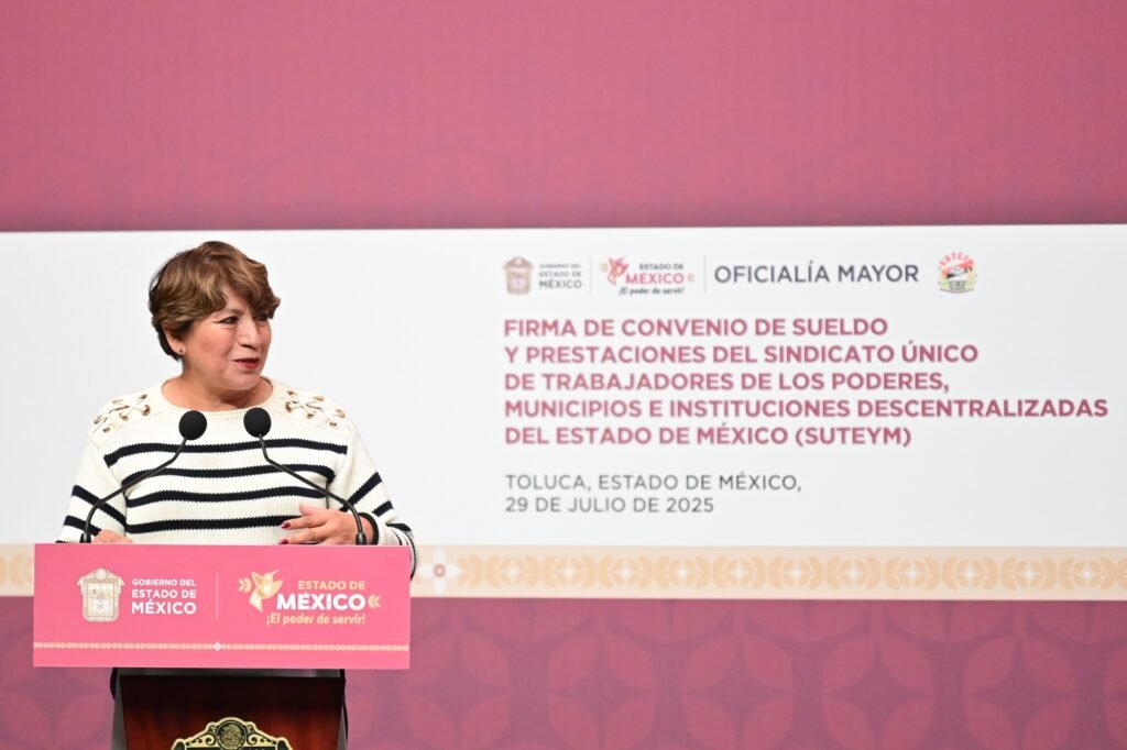 A fin de dar certeza laboral y seguridad económica de las familias mexiquenses, la Gobernadora Delfina Gómez Álvarez firmó el Convenio de Sueldo y Prestaciones 2025 con el Sindicato Único de Trabajadores de los Poderes, Municipios e Instituciones Descentralizadas del Estado de México (SUTEyM), en beneficio de más de 43 mil trabajadores. El acuerdo contempla un incremento salarial directo al tabulador y la mejora de diversas prestaciones clave.