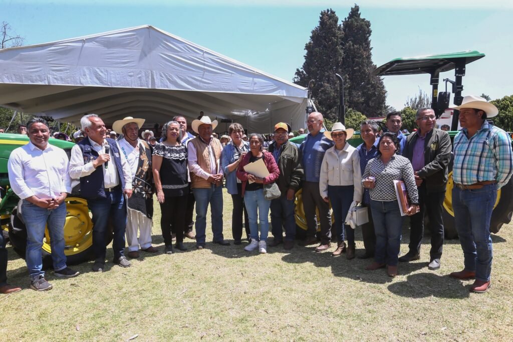 Al hacer entrega en Metepec de tractores, fertilizadoras y sembradoras a agricultores mexiquense, la Gobernadora Delfina Gómez Álvarez respaldó la soberanía alimentaria, “se pueden llevar muchas cosas materiales en cuestión arancelaría, pero lo que no se pueden llevar es nuestro campo, lo que no se pueden llevar es la sabiduría de nuestros ancestros y el conocimiento que tienen nuestros técnicos y científicos”.