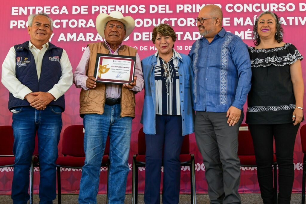 Para reconocer a los ganadores del Primer Concurso de Productoras y Productores de Maíz Nativo y Amaranto del Estado de México, la Mandataria estatal entregó 60 premios como tractores, fertilizadoras y sembradoras, para incentivar a las y los agricultores, quienes, afirma, “son el corazón de la tierra”.