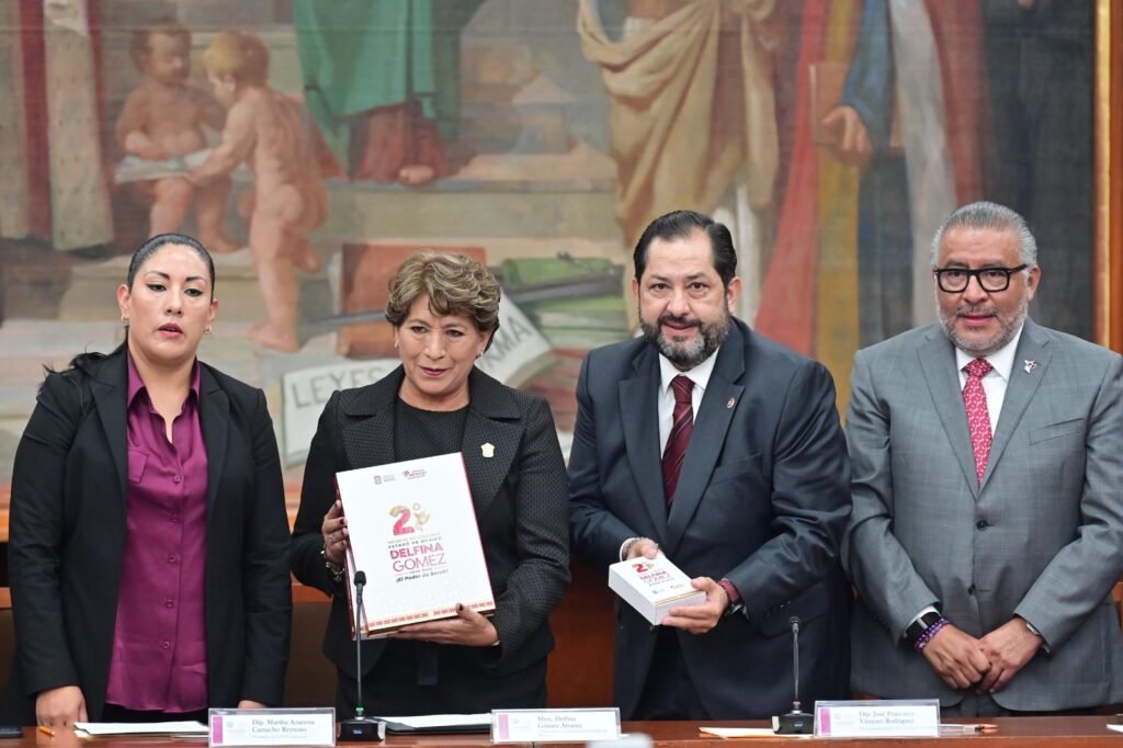 “Hoy rindo cuentas ante esta soberanía popular mediante este acto republicano para entregar de manera impresa y electrónica el estado que guarda la administración pública durante el periodo 2024-2025, informando con honestidad y transparencia sobre los principales avances y logros en las obras y acciones que emprendimos desde el Gobierno del Estado de México en este año de gestión administrativa”, afirmó la Gobernadora Delfina Gómez.