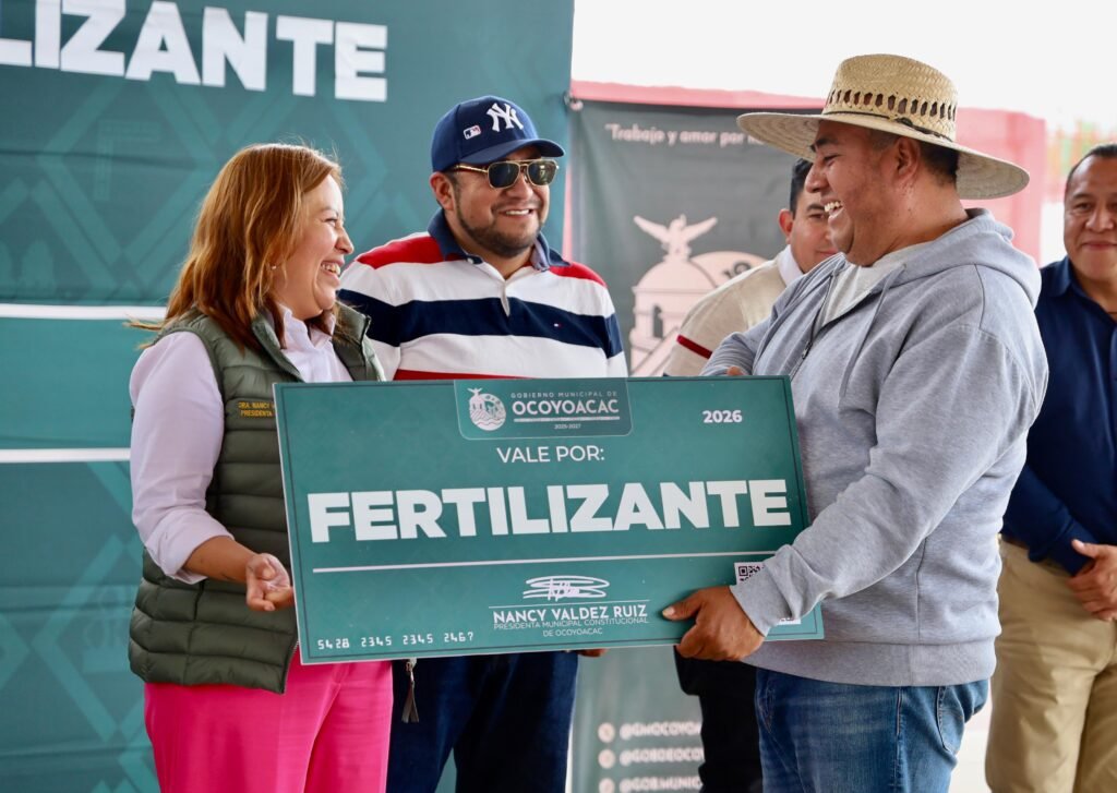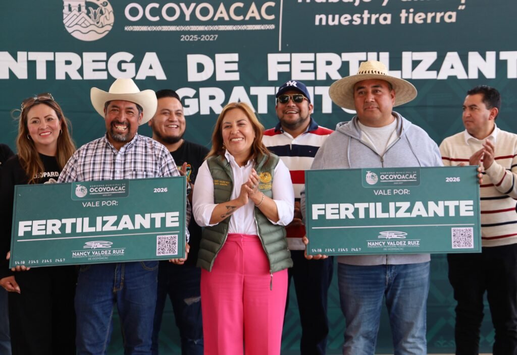 Como parte de las acciones para fortalecer al campo y respaldar la economía de las familias productoras, el Gobierno Municipal de Ocoyoacac, encabezado por la presidenta municipal Nancy Valdez Ruiz, realizó la entrega gratuita de 27 toneladas de fertilizante y 600 litros de biofertilizante, beneficiando directamente a 126 campesinas y campesinos del municipio.