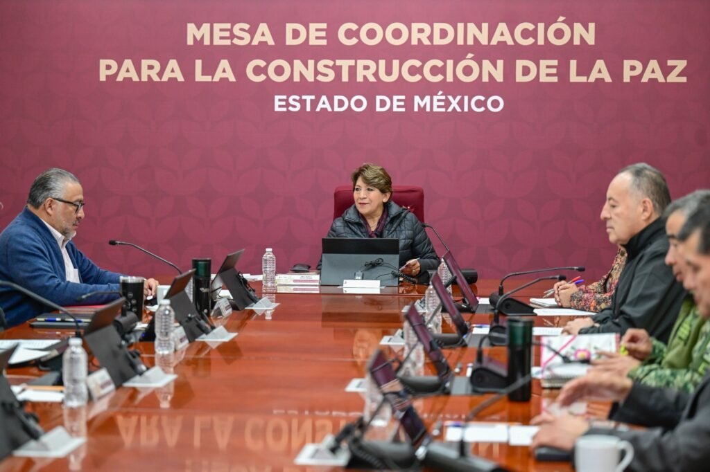 “En la Mesa de Coordinación para la Construcción de la Paz dimos seguimiento a la #MañaneraDelPueblo de la Presidenta @Claudiashein, en la cual se presentó el reporte de incidencia delictiva con corte a junio y donde el #EdoMéx, por primera vez, sale del top 3 en homicidio doloso”, afirmó la Gobernadora Delfina Gómez Álvarez en redes sociales.