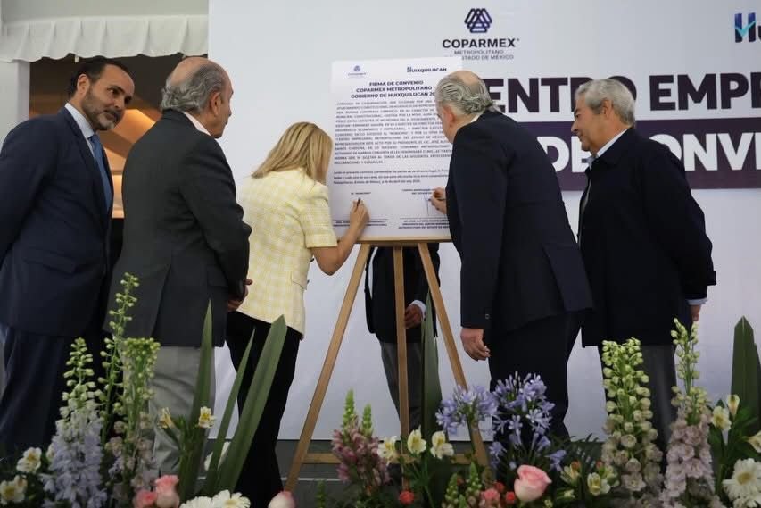 Huixquilucan, Estado de México, abril 16, 2026.- Con el objetivo de seguir fortaleciendo el crecimiento económico y facilitar la llegada de nuevas inversiones, el Gobierno de Huixquilucan firmó un convenio de colaboración con Coparmex Metropolitano del Estado de México, para seguir impulsando el desarrollo del territorio y consolidar las bases para avanzar en la construcción de un municipio más competitivo y con mayores oportunidades para los empresarios y más empleos para la población.
