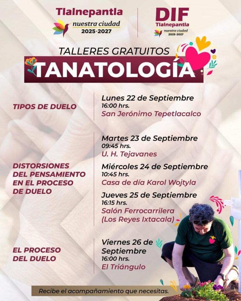 Perder a un ser querido o algo importante puede ser complicado para muchas personas, por eso el DIF Tlalnepantla pone a disposición de las y los ciudadanos, talleres gratuitos de tanatología.