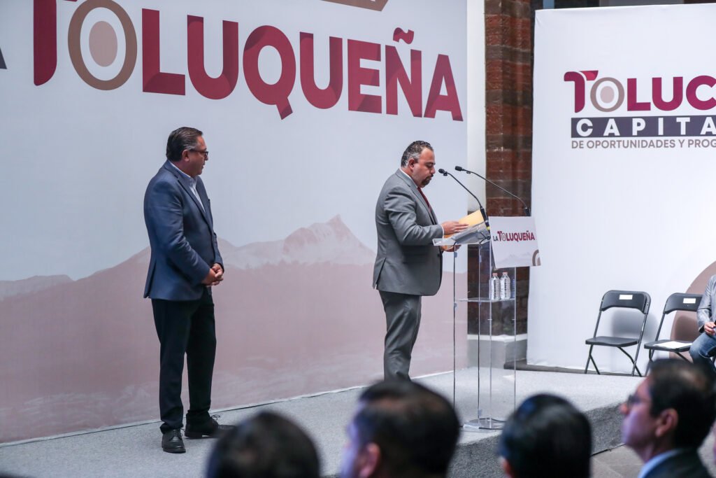 Durante la conferencia semanal La Toluqueña, el Presidente Municipal, Ricardo Moreno, y Víctor Humberto Benítez, Presidente del Colegio de Notarios del Estado de México, firmaron el convenio por medio del cual será posible este beneficio para las familias.