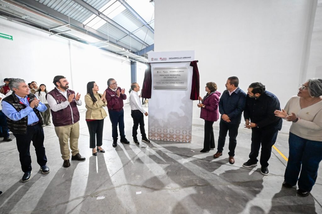 La Gobernadora Delfina Gómez Álvarez entregó la modernización del mercado municipal de Chiautla, una obra con una inversión de 19.6 millones de pesos que incluyó la rehabilitación de techumbre, pasillos, locales, sanitarios, estacionamiento, fachada y alumbrado, generando mil 708 empleos directos e indirectos.