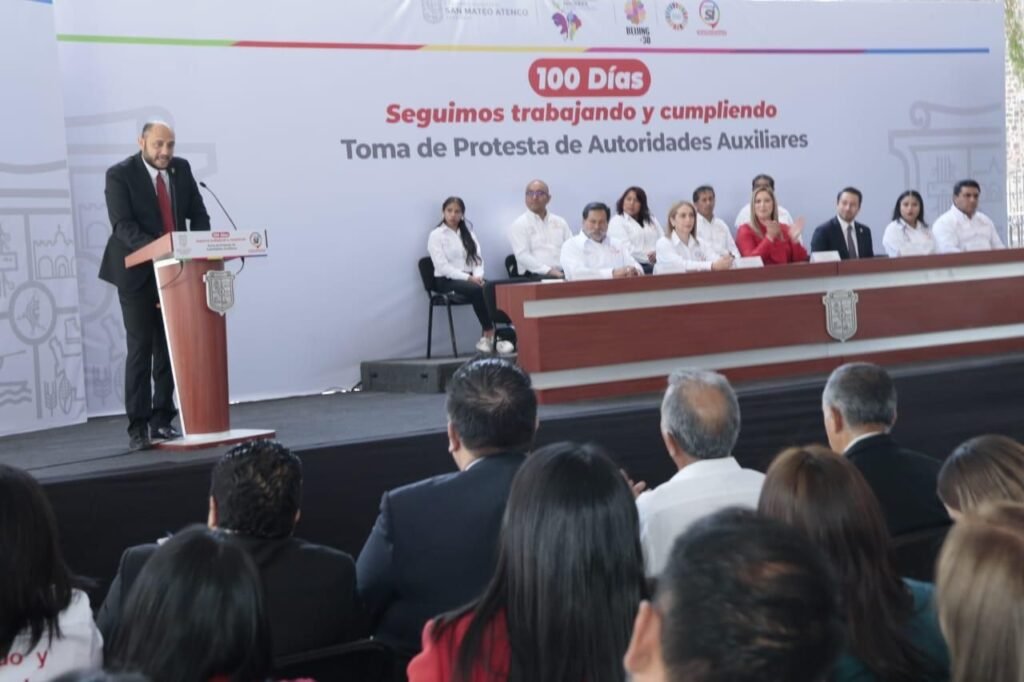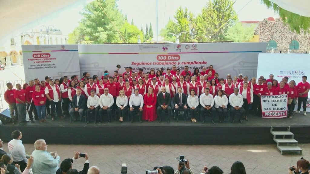 San Mateo Atenco, Estado de México, 10 de abril de 2025.- En un emotivo acto cívico, el Gobierno Municipal de San Mateo Atenco, encabezado por la presidenta Ana Aurora Muñiz Neyra, celebró los primeros 100 días de la administración 2025-2027, con el informe a la ciudadanía de las 100 grandes acciones realizadas en favor del desarrollo de las y los atenquenses.