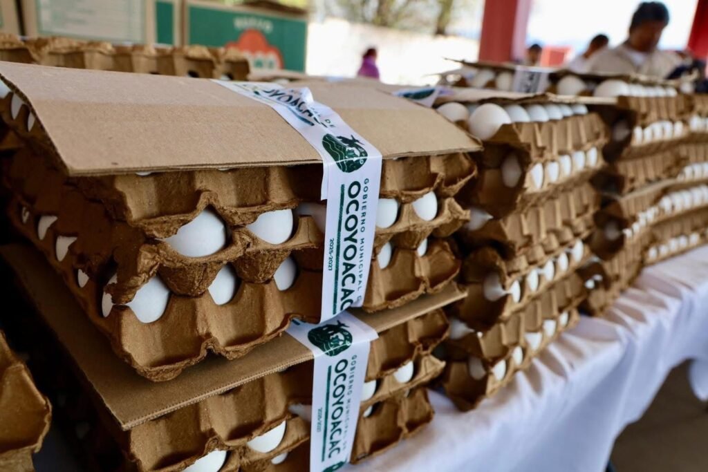 El Gobierno Municipal de Ocoyoacac continúa trabajando para fortalecer la economía familiar y garantizar una alimentación adecuada. Hoy se dio inicio a la entrega del Programa de Huevos, un apoyo alimentario que beneficiará a 2 mil personas, otorgando 6 kilos de huevo por familia para complementar su dieta y reducir gastos en el hogar.