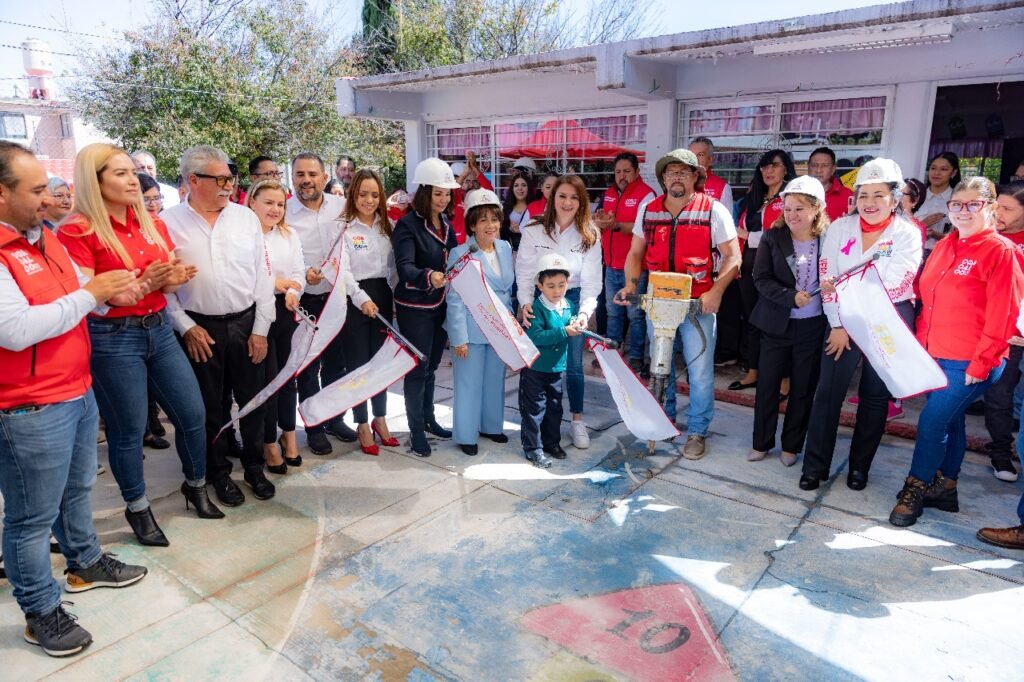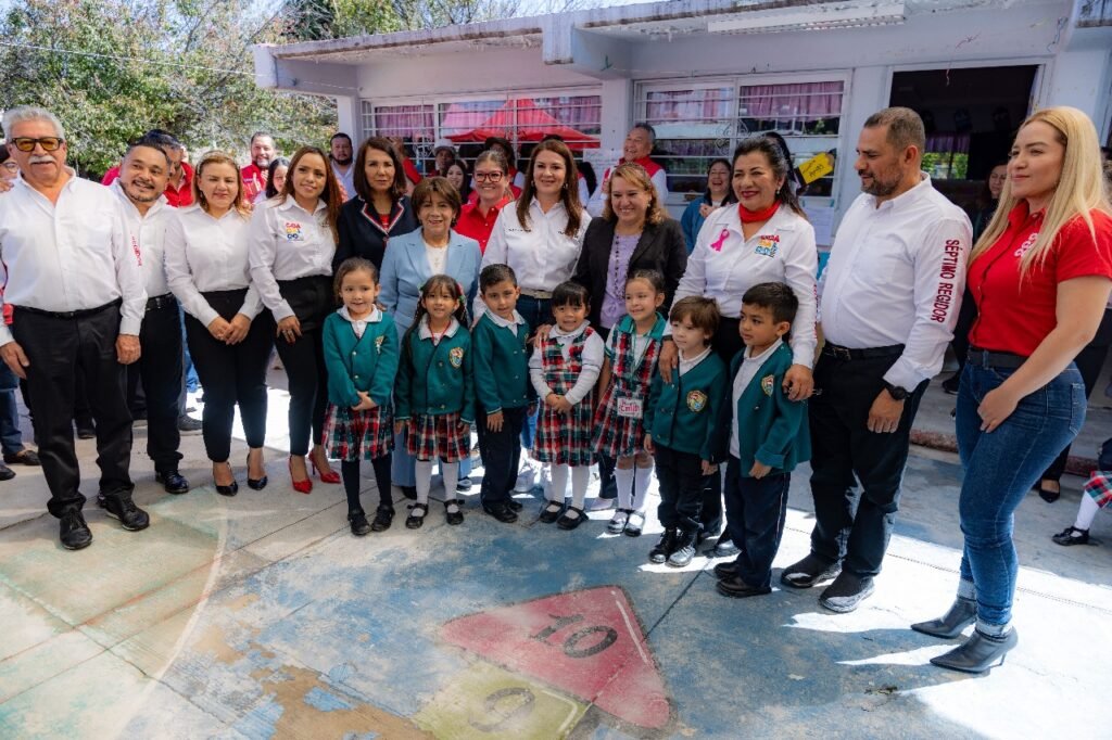 La presidenta del DIF Coacalco, María de Lourdes González Ocampo, en representación del presidente municipal David Sánchez Isidoro, dio el banderazo de inicio a la construcción del arcotecho en el Jardín de Niños Eulalia Guzmán Barrón, ubicado en Bosques del Valle. Esta obra beneficiará a más de 100 estudiantes de nivel preescolar.
