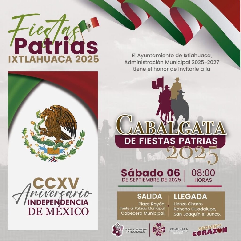 El Ayuntamiento de Ixtlahuaca invita a todas y todos a sumarse a este recorrido festivo y celebrar en unidad las Fiestas Patrias 2025.