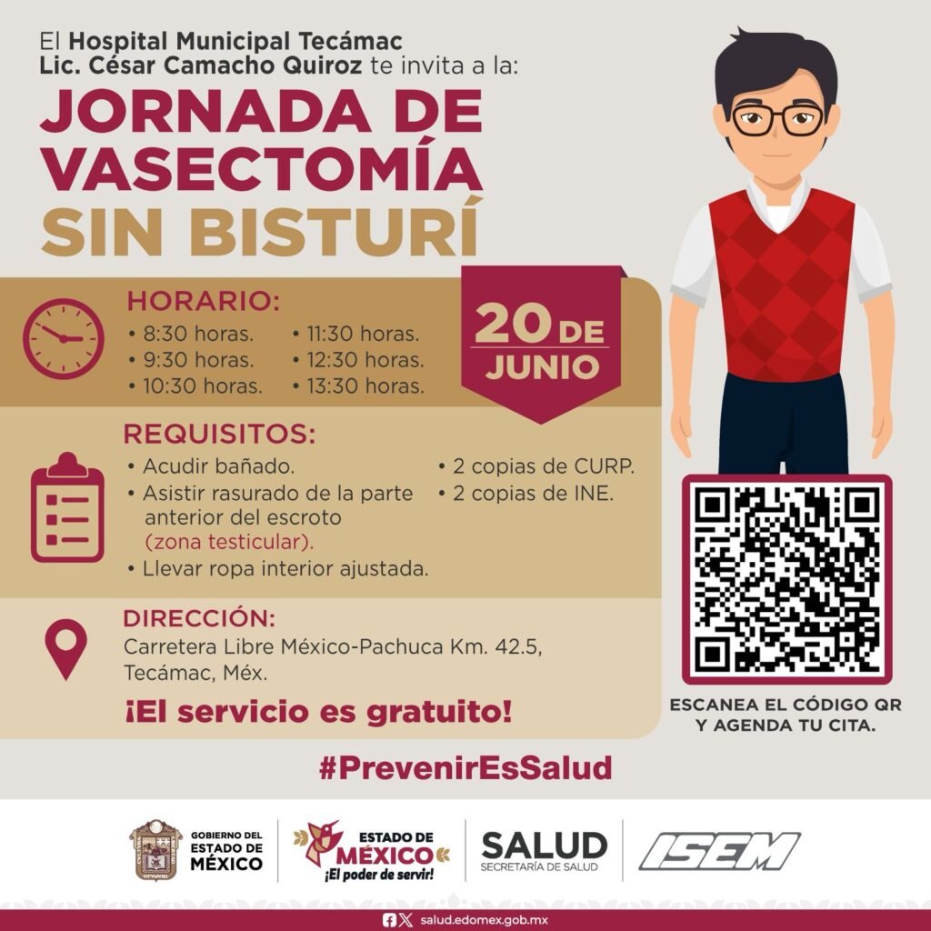 Con el objetivo de procurar una paternidad responsable al participar activamente en la planificación familiar, el Gobierno de la Maestra Delfina Gómez Álvarez invita los varones mexiquenses a las jornadas permanentes y gratuitas de cirugías de vasectomía sin bisturí del Instituto de Salud del Estado de México (ISEM).