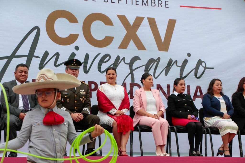Con gran entusiasmo y espíritu patrio, la presidenta municipal Lupita Díaz encabezó el desfile conmemorativo por el CCXV Aniversario de la Independencia de México, realizado en la cabecera municipal.