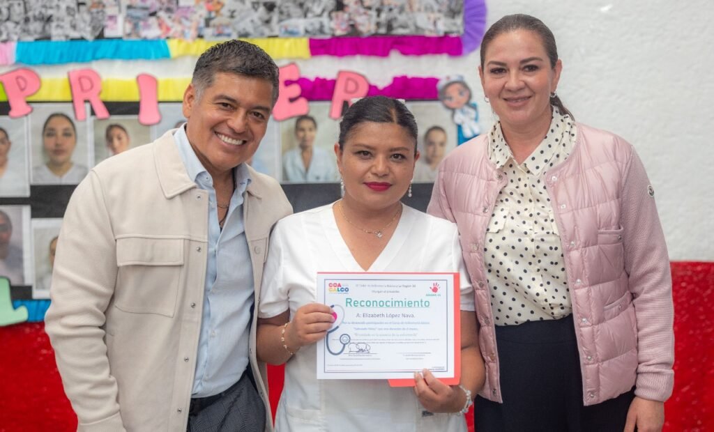 David Sánchez Isidoro, presidente municipal de Coacalco, entregó reconocimientos a vecinas de Villa de las Flores que concluyeron exitosamente el taller básico de enfermería “Salvando Vidas”, cuyo objetivo fue empoderar a las mujeres, fomentar el autocuidado y enseñar cómo actuar ante una emergencia médica.