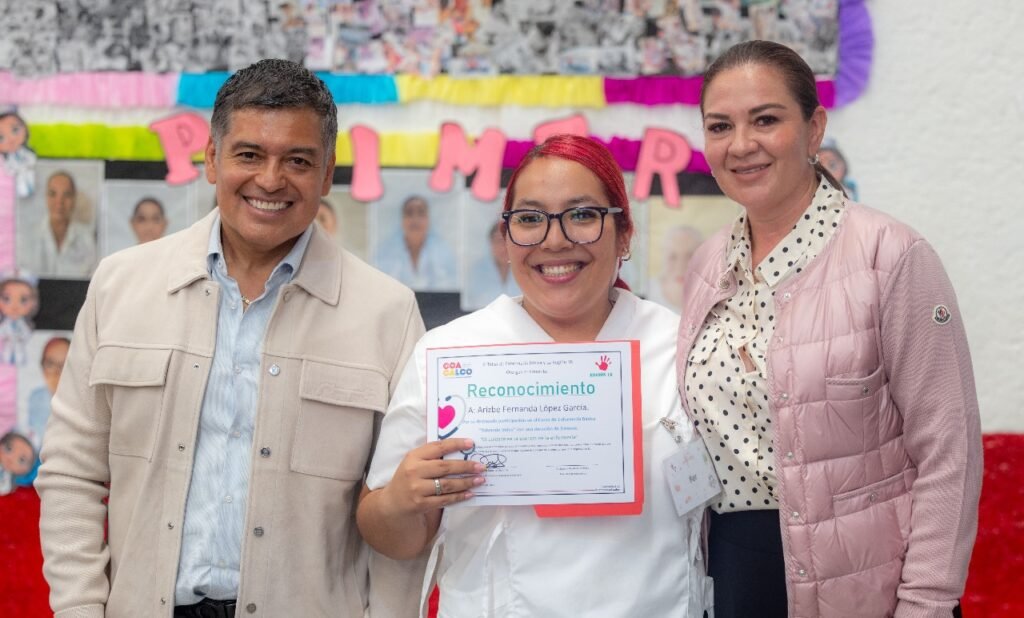 Acompañado de la presidenta del DIF Coacalco, María de Lourdes González Ocampo, entregó los reconocimientos y destacó que estas acciones que fortalecen a la comunidad son resultado del esfuerzo conjunto de las distintas áreas del gobierno municipal.