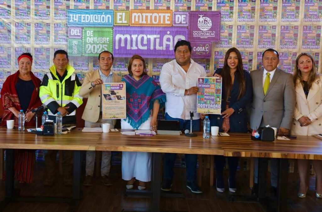 La presidenta municipal de Ocoyoacac, Nancy Valdez, encabezó esta mañana la rueda de prensa para dar a conocer el programa oficial del Festival Mitote del Mictlán 2025, que este año celebra su 14ª edición, consolidándose como uno de los eventos culturales más representativos del municipio.
