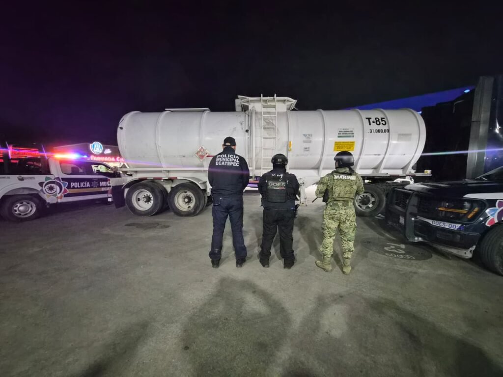 Elementos del Sector 15, con respaldo de personal de Fuerza de Tarea Marina, detuvieron en una gasolinera de Santa Cruz Venta de Carpio al conductor de una pipa con capacidad de 31 mil litros, que transportaba combustible presuntamente robado, quien fue presentado ante el Ministerio Público Federal por probable posesión ilícita de hidrocarburos.