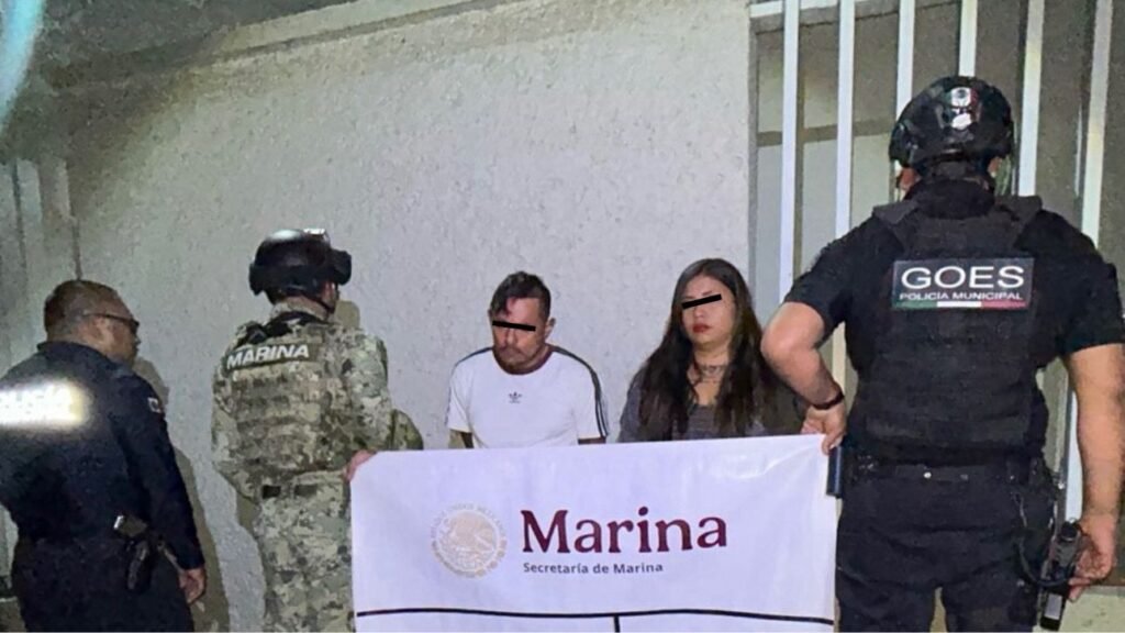 Por estos hechos fueron detenidos Emmily Jomayra “N”, de 25 años de edad, y Diego Alonso “N”, de 39 años, quienes fueron trasladados al Centro de Justicia de Ecatepec como probables responsables de delitos contra la salud, portación, tráfico y acopio de armas prohibidas.