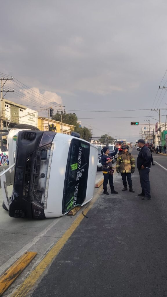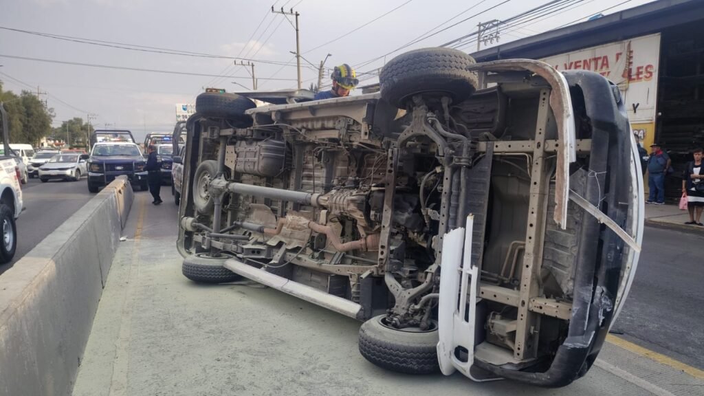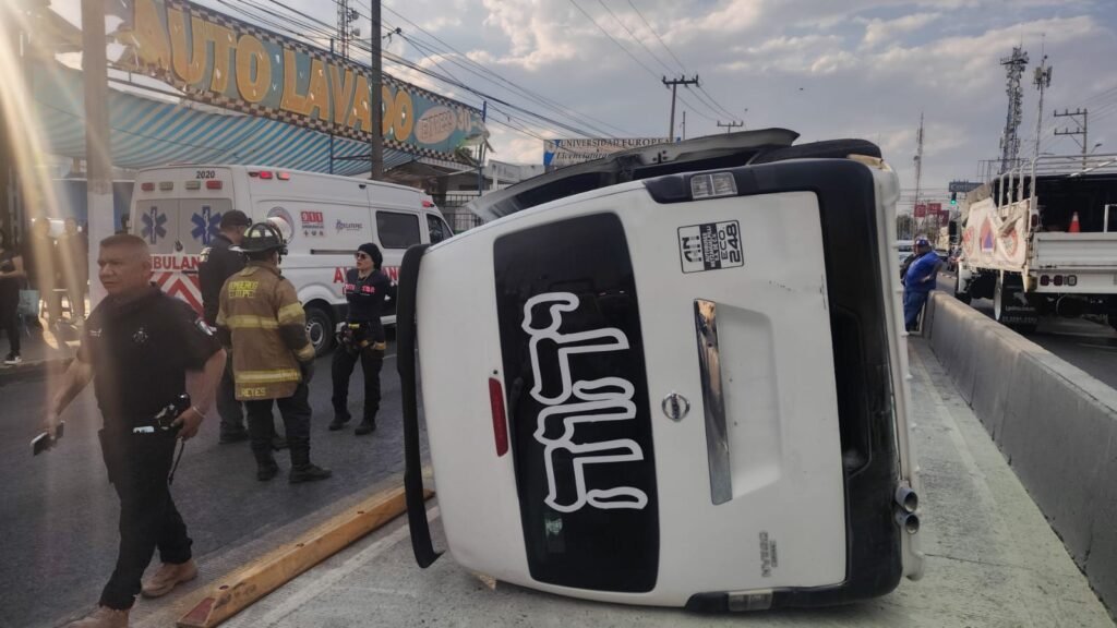 En dos hechos distintos, elementos de Protección Civil y Bomberos atendieron la volcadura de un vehículo de transporte público en la avenida Revolución y de un auto particular en la autopista México-Pachuca, lo que dejó un saldo de seis personas lesionadas.