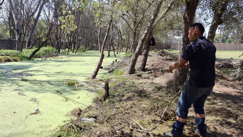 El Ayuntamiento de Tepotzotlán, encabezado por la Presidenta Municipal María de los Ángeles Zuppa Villegas, dio a conocer que, como parte de las acciones permanentes para el mejoramiento de espacios públicos y la prevención de riesgos, se llevan a cabo trabajos de limpieza, desazolve y retiro de material en el vaso regulador de agua de lluvia ubicado en el Deportivo Carlos Hermosillo, en el fraccionamiento El Trébol.